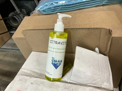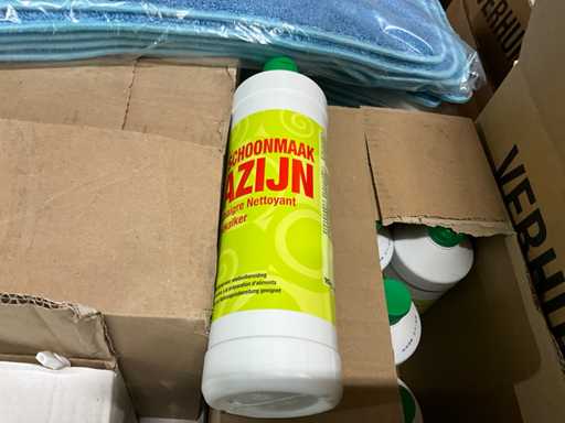 w tym detergenty do zmywarek; ocet schoknmaaka; uniwersalny środek czyszczący; Rękawice robocze Unger; mycie okien, ręczniki kamzicowe; w różnych pudełkach na paletach;