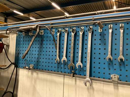 Zawiera pistolet smarujący na montowanym stojaku ściennym; wymiary około 1900x450 mm;
