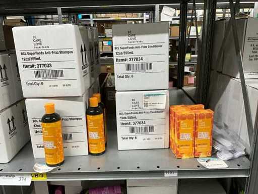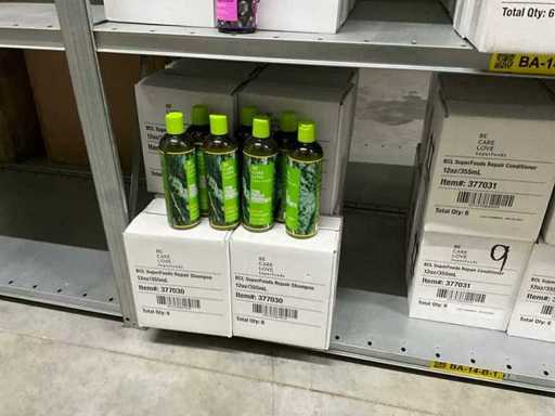 Składa się z: szamponu, serum, odżywki itd.; półki w 1 sekcji