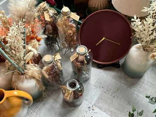 Różne suszone kwiaty i dekoracje
