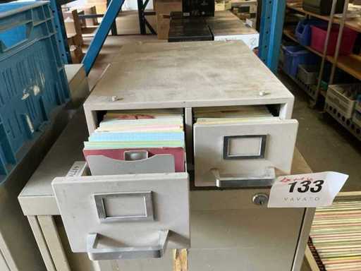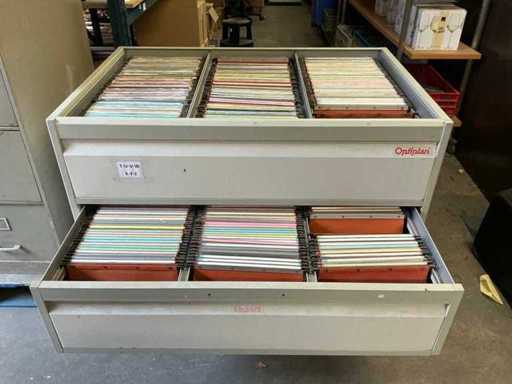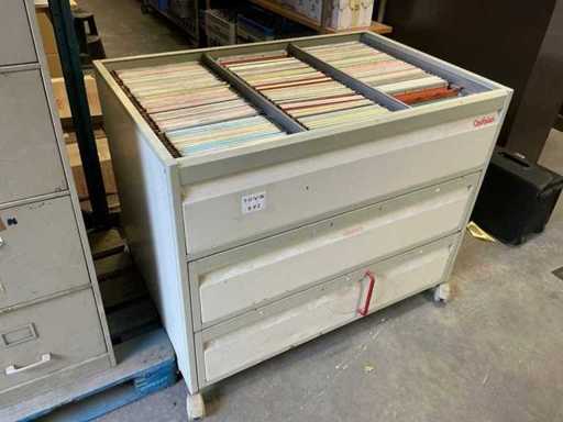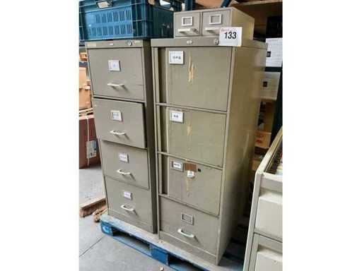 W tym 2x metalowa szafa na dokumenty Curacier z podwieszaną strukturą akt i 4 szufladami, wymiary: 46x72x136cm oraz 1x mobilna szafa Optiplan z podwieszaną strukturą akt i 3 szufladami, wymiary: 117x80x95cm, wraz z mobilną szafą z zawieszoną strukturą akt