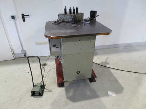 Hydr. Notching machine - Footswitch - 2 pcs sheet metal stop Sheet thickness 3 mm Knife length 250 mm Angle adjustable from - to fixed 90 degrees Table surface 900 x 790 mm Machine weight approx. 0.65 t Dimensions L x W x H 1.2 x 0.9 x 1.1 m Condition: unchecked (6)