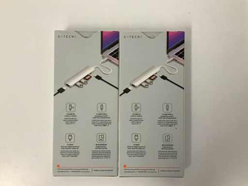 2x Satechi USB C Hub Slim Multiport Adapter V2 z 60W USB C PD, 4K HDMI (60Hz), czytnikami kart Micro/SD, USB 3.0 - dla MacBook Pro i MacBook Air M2/M1, iPad Pro/Air M2/M1, Mac mini, iMac (srebrny)