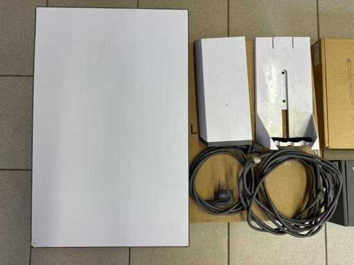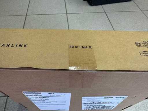 Complete Starlink satellite internet set consisting of rectangular satellite dish, Starlink router/power supply, mounting base and 50 meters of Starlink cable. Offers high-speed satellite internet, ideal for locations without a fixed internet connection. Hardware is transferable; subscription to be taken out separately with Starlink. Tested, complete and in good condition. Subscription not included. Completely new cable unused (included).