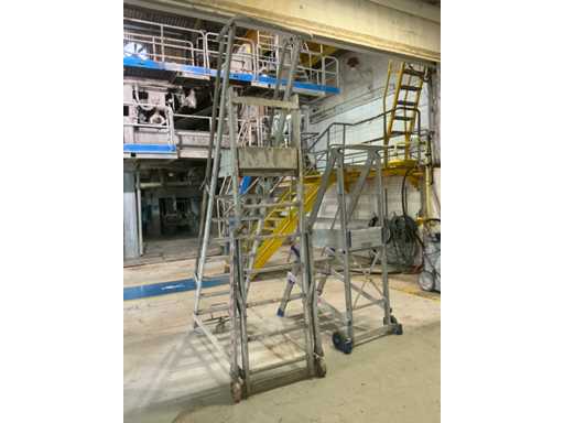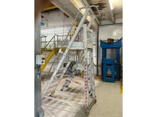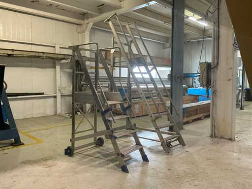 - Drabina: szerokość stopnia 500 mm, wymiary podestu 500 x 550 mm, wysokość podestu nad ziemią 1720 mm, 3 koła.