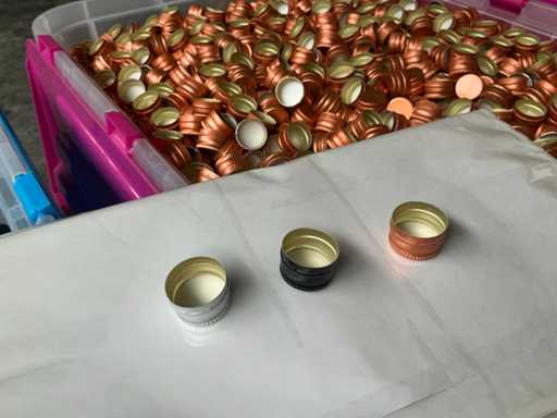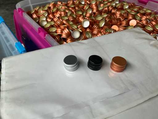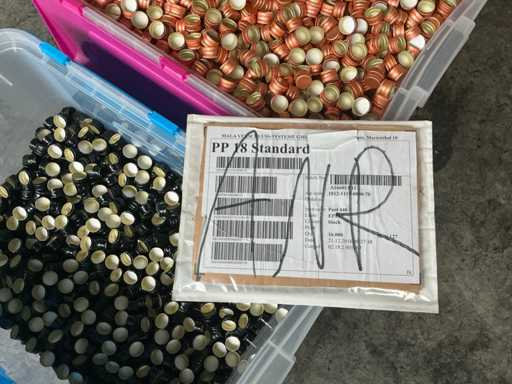 This lot consists of several 'Screw cap PP18' in colors: black, gray (silver) and copper.