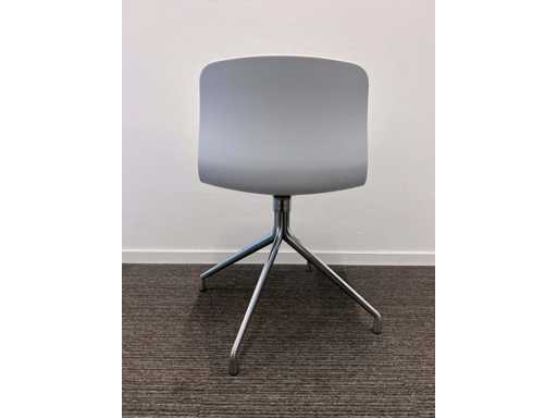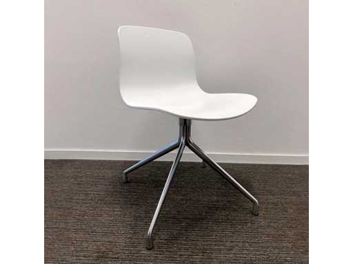 Krzesło obrotowe 3xDesign od HAY, model AAC 10 (About A Chair). Fotel ma ergonomicznie ukształtowaną obudowę siedzenia z białego plastiku oraz stabilną, obrotową czteronogą obudowę z chromowanego metalu. Ponadczasowy skandynawski design, odpowiedni do sali konferencyjnej, biura lub jadalni.