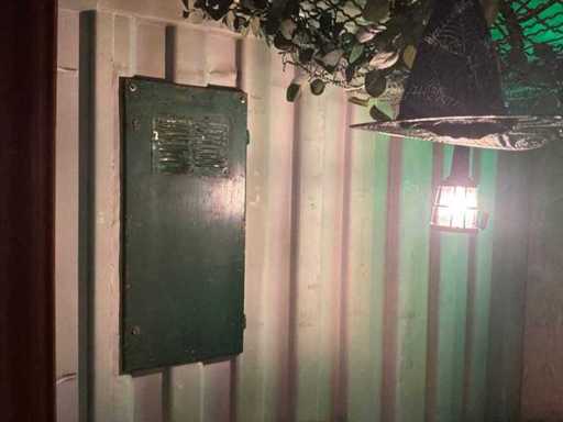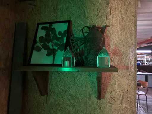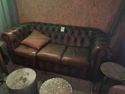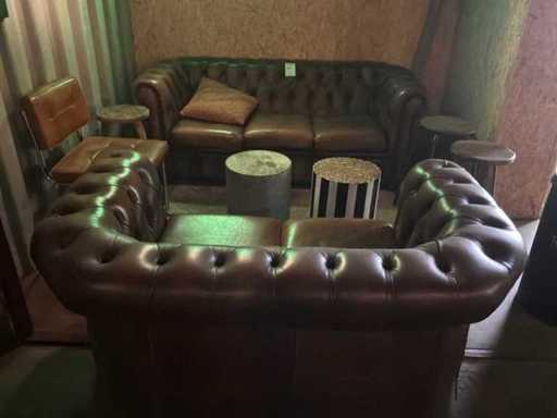 Consisting of: 1x three-seater sofa 200x87x80cm, 1x two-seater sofa 200x87x80cm, table with 3 stools, floor lamp, wall shelf with decoration material.
