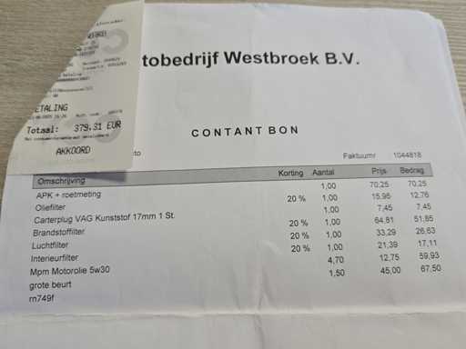 W przypadku nabywców z Holandii i nabywców spoza UE Rest-BPM jest doliczany do kwoty oferty. Reszta BPM wynosi 2976 € i nie jest wliczona w cenę całkowitą podczas licytacji. Łączna cena nie zawiera BPM. Ten program dotyczy tylko nabywców w Holandii i nabywców spoza UE.
