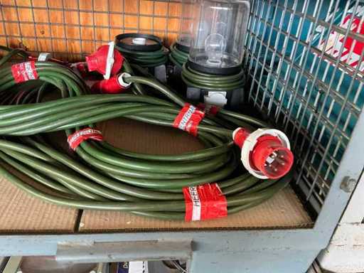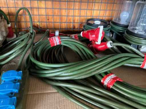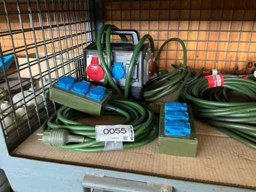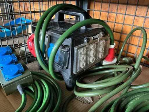 Skrzynka rozłączeniowa budowlana z kablami i oświetleniem awaryjnym
