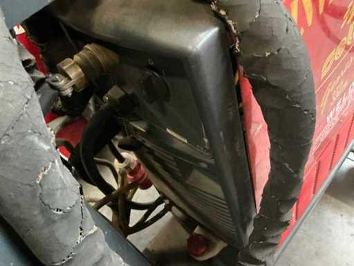 - Z uziemiającym zaciskiem, regulatorem ciśnienia gazu i palnikiem spawalniczym Mig.