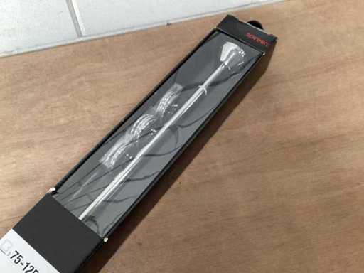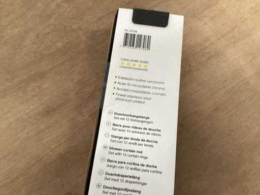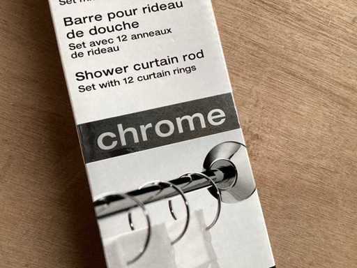 Chromowany pręt do zasłon prysznicowych, różne możliwe konfiguracje, w tym materiały montażowe