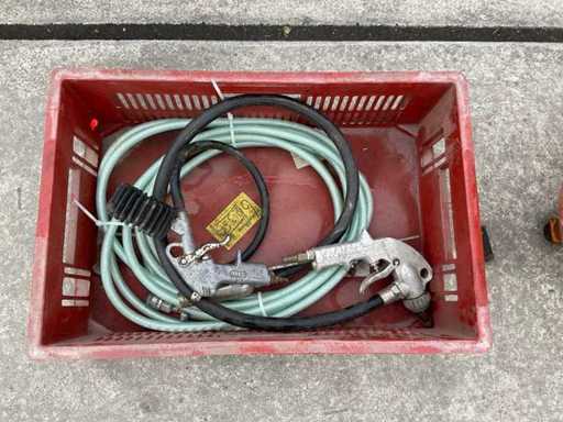 Zawiera wąż sprężonego powietrza, pistolet do lakieru, pompkę do opon.