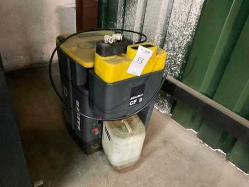 1x Type TE91 kondenstura 16 bar, 1x Type ASD 57 cap 11 bar. W tym separator oleju i wody typu Kaeser Quamat CF 9, różne filtry powietrza. Wymiary na kawałek lxdxh 150x102x150cm, 140x95x150cm