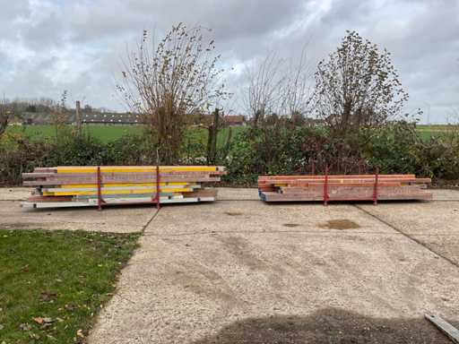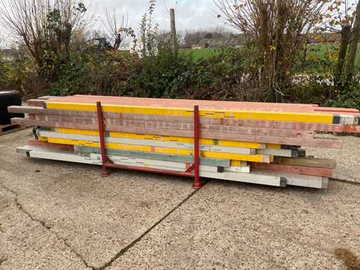 składa się z: profili murarskich od 300 cm do 375 cm, 38x śrubowy śmigł, materiały murarskie Altrex / rusztowania (carrier 2000x190mm, trap 1800x600mm, 2x carrier 2430x290mm, 1x schody 3000mm, 1x schody 2000mm)