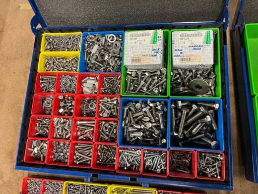 Śruby, śruby, nakrętki w metalowym pudełku Sortimo (2x)