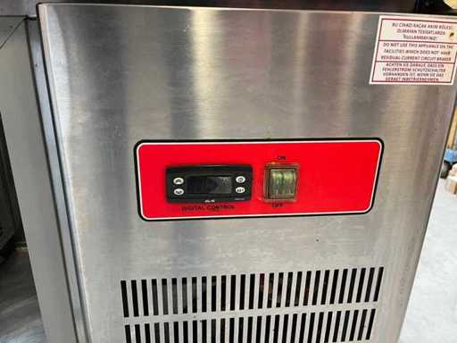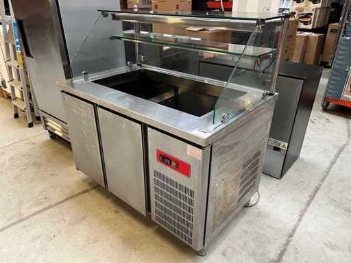 Stalowy stół warsztatowy chłodzony do sałatki/chłodzeń ze szklaną nadbudówką dwudrzwiową