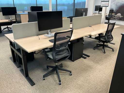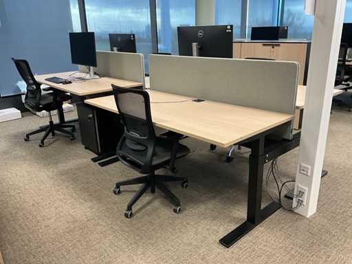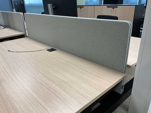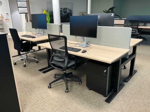 Rozmiar arkusza: 180x80 cm. Zawiera 3x krzesło biurowe Luxy Pop, 1x krzesło biurowe Löffler, 2x akustyczne ściany działowe Bralco o rozmiarach 58x175cm oraz 2x drewnianą jednostkę szufladową Bralco H58xW42xD56cm. Monitory i urządzenia peryferyjne nie są dołączone.