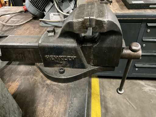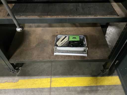 Wyposażony w 1 szafkę, 4 szuflady i różne rzeczy z imadłom zaciskowym, oświetleniem i różnymi dodatkami na stole roboczym, bez maszyny szlifierskiej