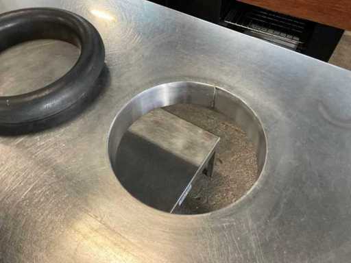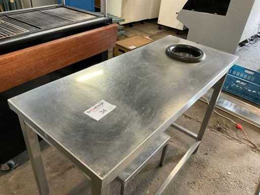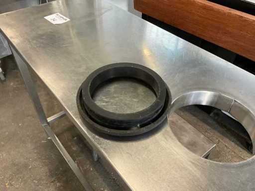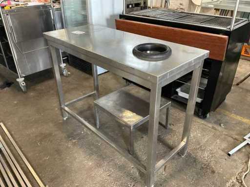 Stół roboczy ze stali nierdzewnej z wbudowanym pierścieniem na odpady spożywcze. Podstawa stołu ze stali nierdzewnej 500x500