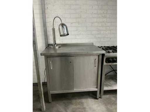 Stół roboczy ze stali nierdzewnej z dwoma drzwiami przesuwnymi i podniesioną krawędzią