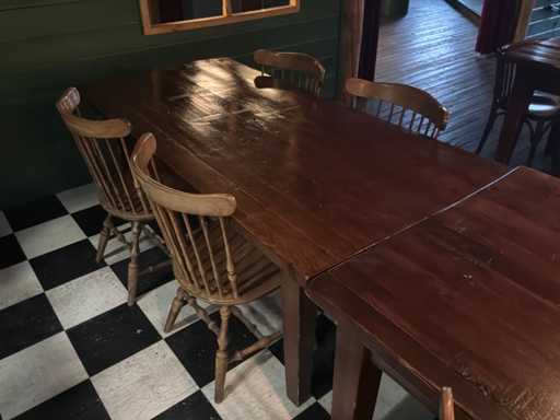 Dotyczy 3x stołu stołowego: (1x 270cmx90cmx80cm, 1x 221cmx90cmx77cm, 1x 180cmx89cmx77cm), w tym 16 krzeseł.