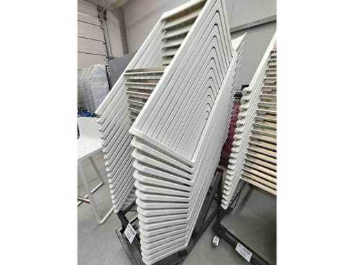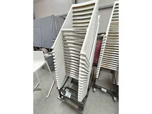 18 stołków barowych, Kazar, kolor biały, stalowe stopieńki ze stali nierdzewnej wraz z wózkiem transportowym