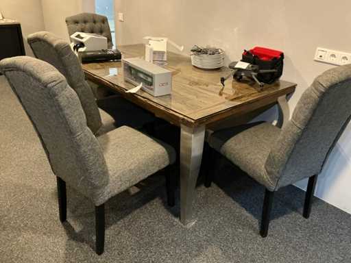 Drewniana pokrywa z szklaną osłoną, wymiary stołu około 180x100x77cm.