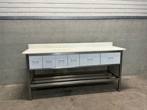 Stół do cięcia ze stali nierdzewnej z podniesioną krawędzią i 6 szufladami