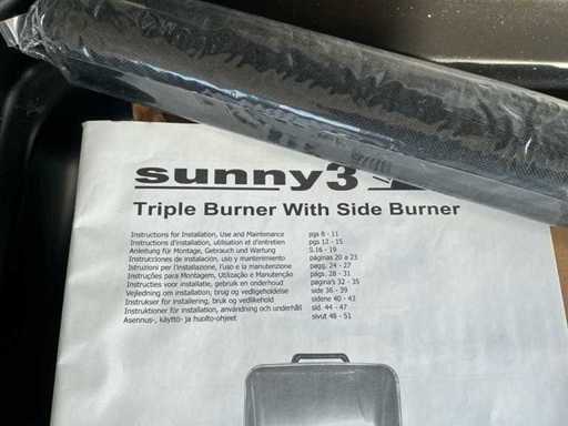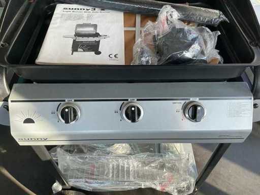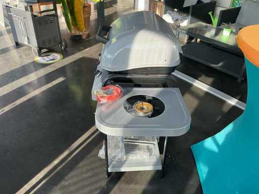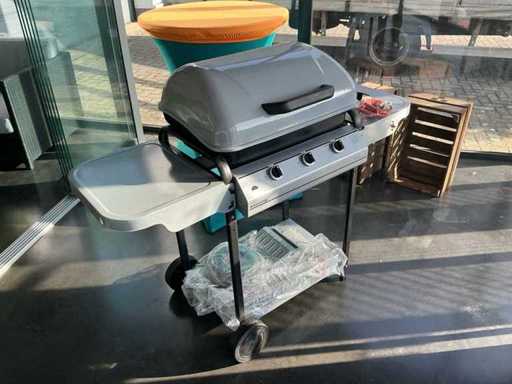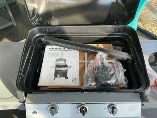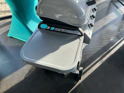 Wyposażony w: 3 palniki, osobny palnik gazowy, węż, różne stojaki, żeliwną płytkę grillową, pokrywę na przechowywanie, manual.