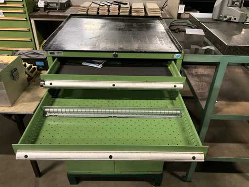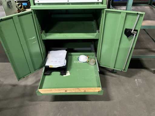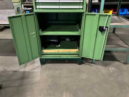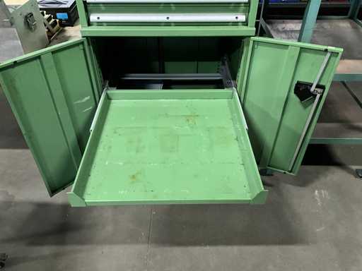 Wyposażony w 2 szuflady i szafkę dolną z dwoma drzwiami i 2 szufladami.