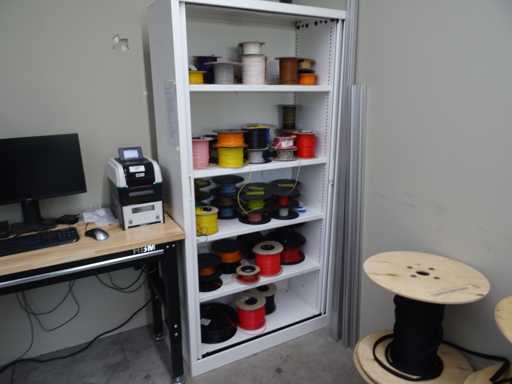 Wyposażony w 4 półki, bez zawartości, wymiary: 198x100x43cm (hxwxd)