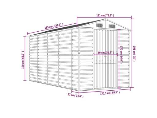 Wytrzymały materiał: szopa ogrodowa wykonana jest ze stali ocynkowanej, co zapobiega rdzewieniu i służy przez długi czas. Stal jest niezwykle twardym i wytrzymałym materiałem. Zapewnia solidność i stabilność. Galwanizacja zapewnia lepszą ochronę przed korozją i jest przydatna w przypadku produktów stosowanych na zewnątrz lub w trudnych warunkach.