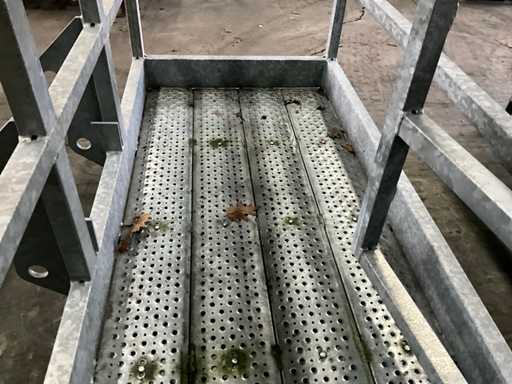 wyposażony w adapter do ładowania kołowego (szerokość środek/środek 560 mm, wysokość środek/środek 270 mm), skrzynkę z automatycznie zamykanymi drzwiami, poręcz (całkowita wysokość poręczy 1000 mm),