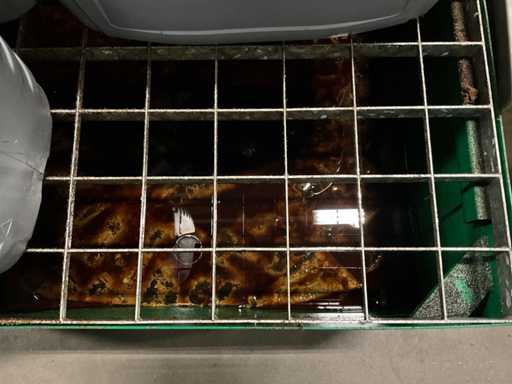 Z jednym kawałkiem mobilnej tacy ze stali nierdzewnej (z resztkami), partią pustych plastikowych puszek