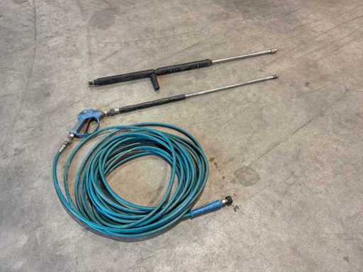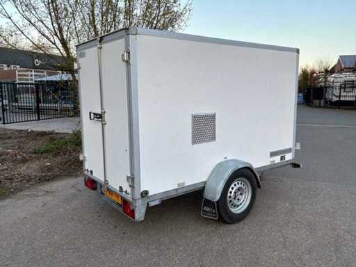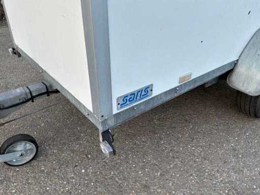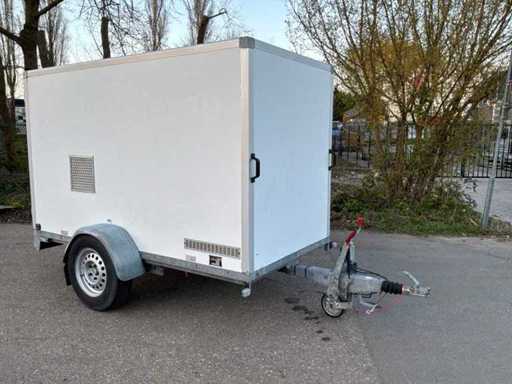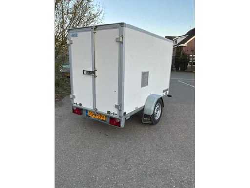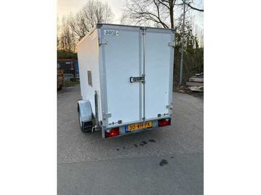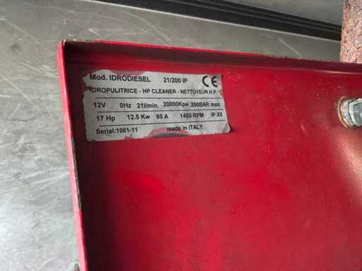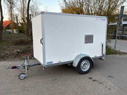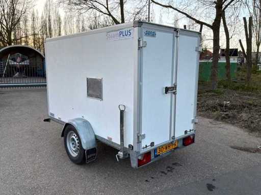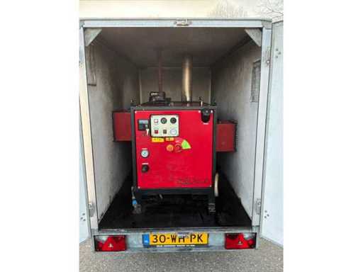 Steamplus high-pressure cleaner in Saris closed trailer, electrically started, equipped with 3-cylinder Lombardini Focs diesel engine, comes with 25M hose and 2x lance. 200BAR power 21L per minute. With 300l water tank. Reading hours: 139