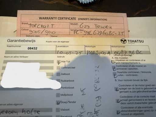 Tender i silnik w wodzie 10-5-2025 i ok. 5 godzin żeglugi próbnej. Przyczepa bj. 2023 na sprzedaż za dodatkową opłatą, więc nie jest wliczony w cenę.