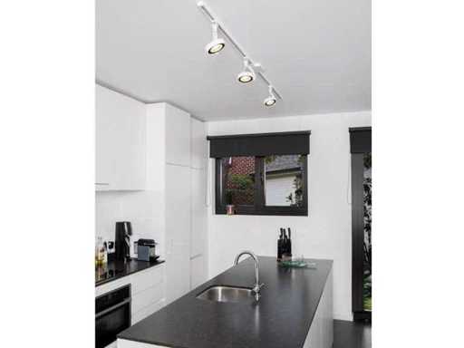 System szyk szykowy nadaje się do oświetlenia biura, pracowni, pomieszczeń recepcyjnych, pracowni lub salonu, a także do użytku w salonie, kuchni, korytarzu lub sypialni. Łatwe w montażu, odpowiednie do użycia z dowolnym źródłem światła LED lub halogenowego typu ES111/GU10, przechylane i obrotowe, oferują dużą dokładność regulacji światła, wyposażone w jednofazowe złącze szynowe ściemniane, w zestawie ze wszystkimi złączami zarówno do prostego układania, jak i w kształcie litery L. Można je rozbudować o więcej poręczy lub opraw. Ta część składa się z: 4 x 1 fazowe oprawy szynowe o wymiarach 95 cm, 1 złącza zasilacza 5 cm, 2 elementów sprzęgających prostolinijnych, 2 elementów sprzęgających narożnych, 10 opraw szynowych + końcówek. rozmiar około 12 x 3,5 x 17 cm, dopasowanie GU10, waga: 230 gr. (z wyłączeniem źródeł światła) Kolor: matowa biel. Szczegóły: To całkowicie nowy produkt