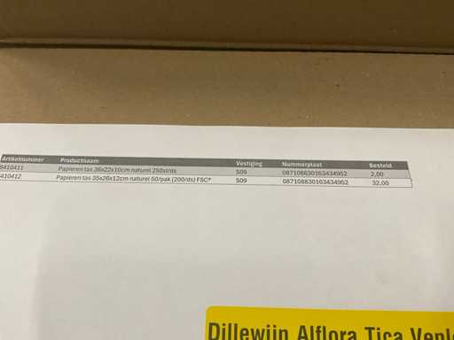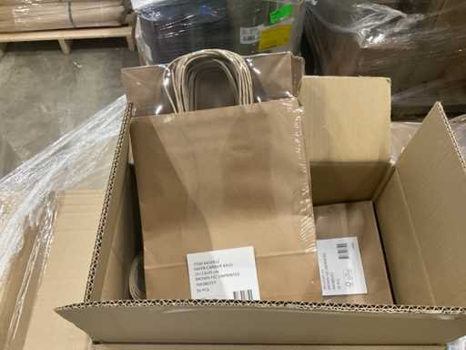 1 paleta składająca się z 2 pudełek po 250 sztuk worków naturalnych 36x22x10 cm i 32 paczek po 50 sztuk worków naturalnych 35x26x12 cm wraz z paletą.