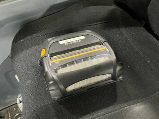 Wyposażony w: aparat, niebieski punkt, cyfrowy ekran dotykowy, tablet HoneyWell Thor VM1A z Androidem, skaner kodów kreskowych HoneyWell, drukarkę etykiet Zebra ZQ521. Wskazuje na różne awarie, uszkodzony wyświetlacz.