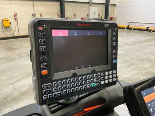 Wyposażony w: aparat z wyświetlaczem, niebieski punkt, cyfrowy ekran dotykowy, tablet HoneyWell Thor VM1A z Androidem oraz drukarkę etykiet zebra ZQ521.
