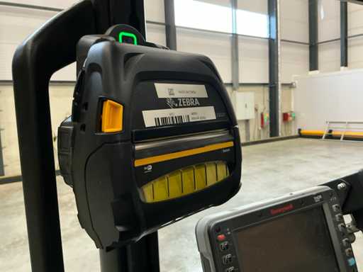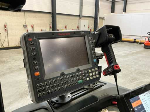 Wyposażony w: aparat z wyświetlaczem, niebieski punkt, cyfrowy ekran dotykowy, tablet HoneyWell Thor VM1A z Androidem, skaner kodów kreskowych HoneyWell oraz drukarkę etykiet Zebra ZQ521.