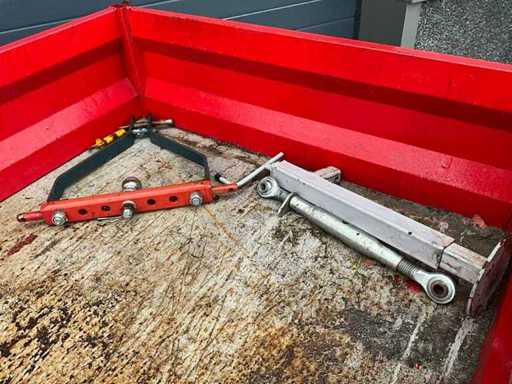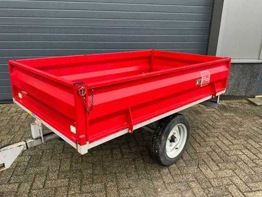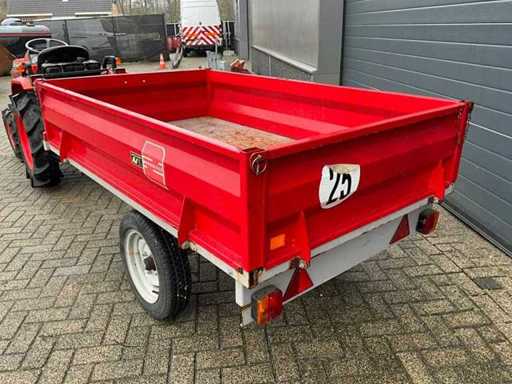 Wyposażony w wywrotkę z jedną osią oraz różne akcesoria, w tym skrobak ziemi, ramę 3-punktową oraz holownik łąk