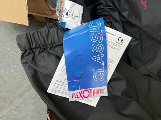 Różne rodzaje i rozmiary spodni przeciwdeszczowych i kurtek przeciwdeszczowych