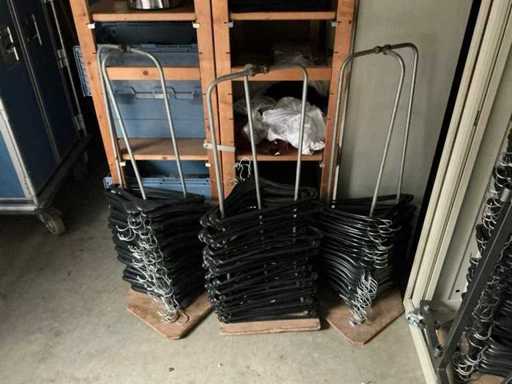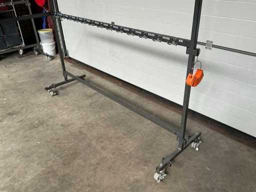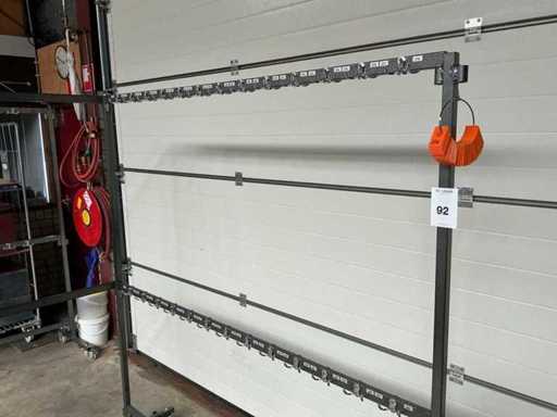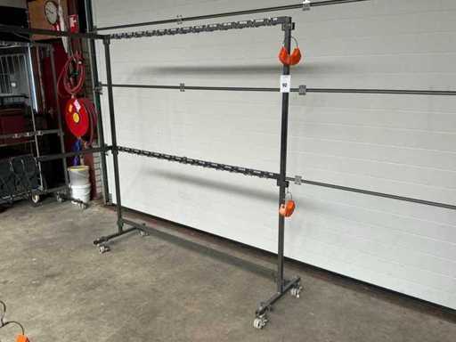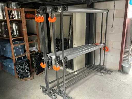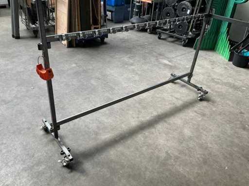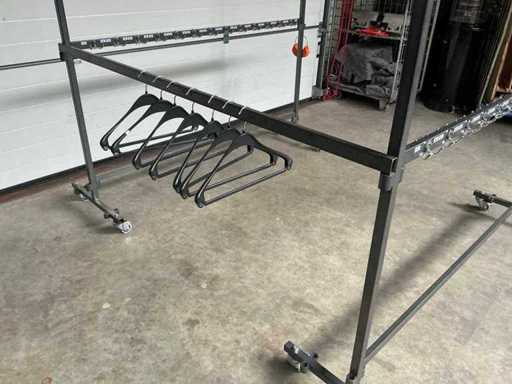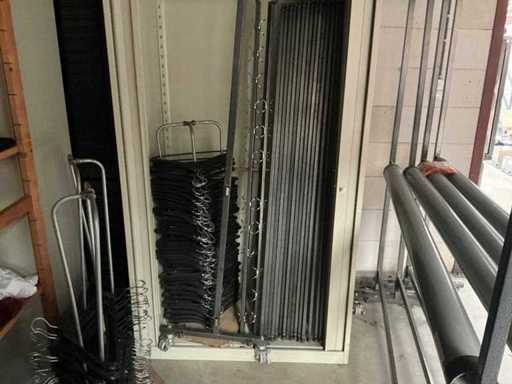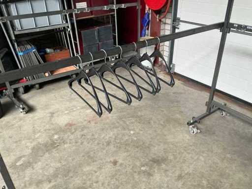 Składa się z 7 mobilnych stojaków z etykietami, różnych elementów łączących: w tym 15 belek na wieszaki, 2 przedłużeń z hakami, 1 mobilnego wieszaka na nogi oraz rury PVC do ochrony