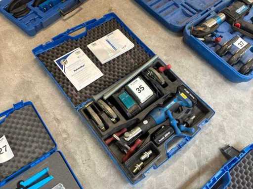Maszyna do prasy akumulatorowej, odpowiednia dla średnic 16, 20 i 32 mm. Zawiera etui z ładowarką do baterii.