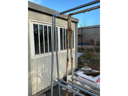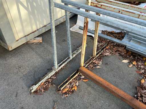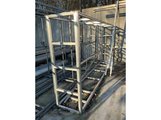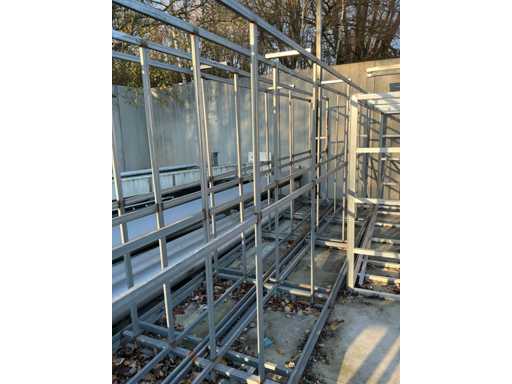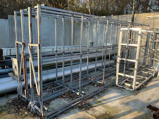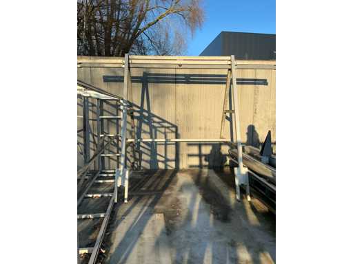 Including 2x Metal double-sided trestle with dimensions: 600x65x210cm, complete with 2 various aluminum frames including 1 with rail system, dimensions: 380x60x180cm and 390x170x255cm