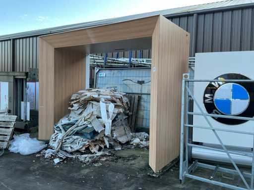 Complete with some advertising accessories including 1 advertising column BMW, some banners and PVC advertising signs, lying in 2 crates