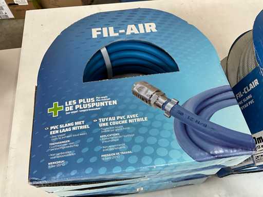 Partia składająca się z; 3x wąż PVC z warstwą nitrylu 20 m, 3x wąż półprzezroczysty PVC wzmocniony gwintem nylonowym 20 m, 2x wąż półprzezroczysty PVC wzmocniony gwintem nylonowym 10 m.