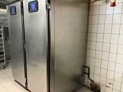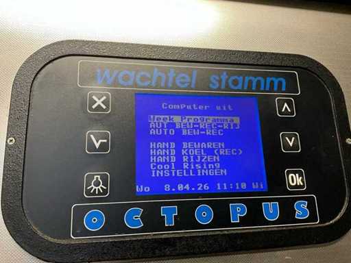 Profesjonalny zabezpieczający Wachtel Stamm z ośmiornicą na sprzedaż. Idealne do rzemieślniczej piekarni do kontrolowanego wyrastania, chłodzenia i przechowywania ciasta. Wyposażony w automatyczne programy, cyfrową obsługę i odpowiedni dla wózków piekarniczych. W pełni funkcjonalny i gotowy do użycia. W środku są przewodniki do blach do pieczenia, duża pojemność (60x80 talerzy, 2x 60 na 40)